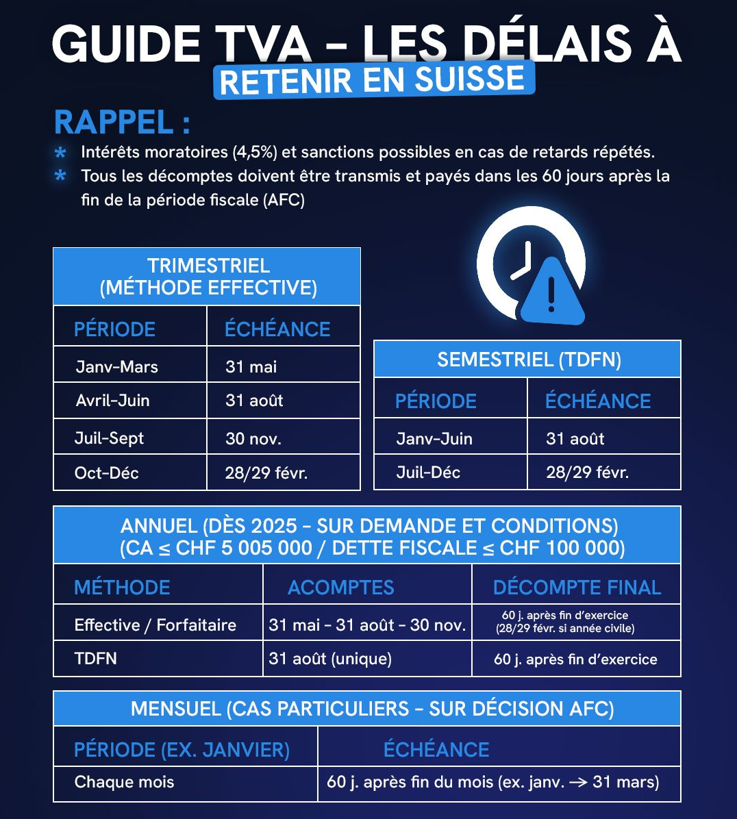 Échéances pour le dépôt des décomptes TVA
